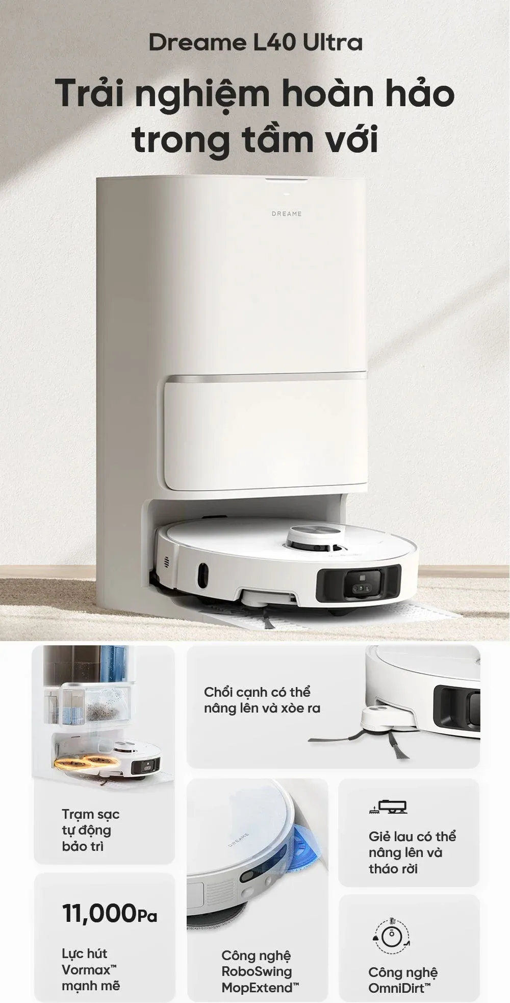 Trong thời đại công nghệ 4.0, việc chăm sóc nhà cửa trở nên dễ dàng hơn bao giờ hết với sự xuất hiện của Robot hút bụi lau nhà. Một trong những sản phẩm nổi bật hiện nay là Xiaomi Dreame L40 Ultra. Với những tính năng vượt trội, sản phẩm này không chỉ giúp bạn tiết kiệm thời gian mà còn mang lại hiệu quả làm sạch tối ưu.