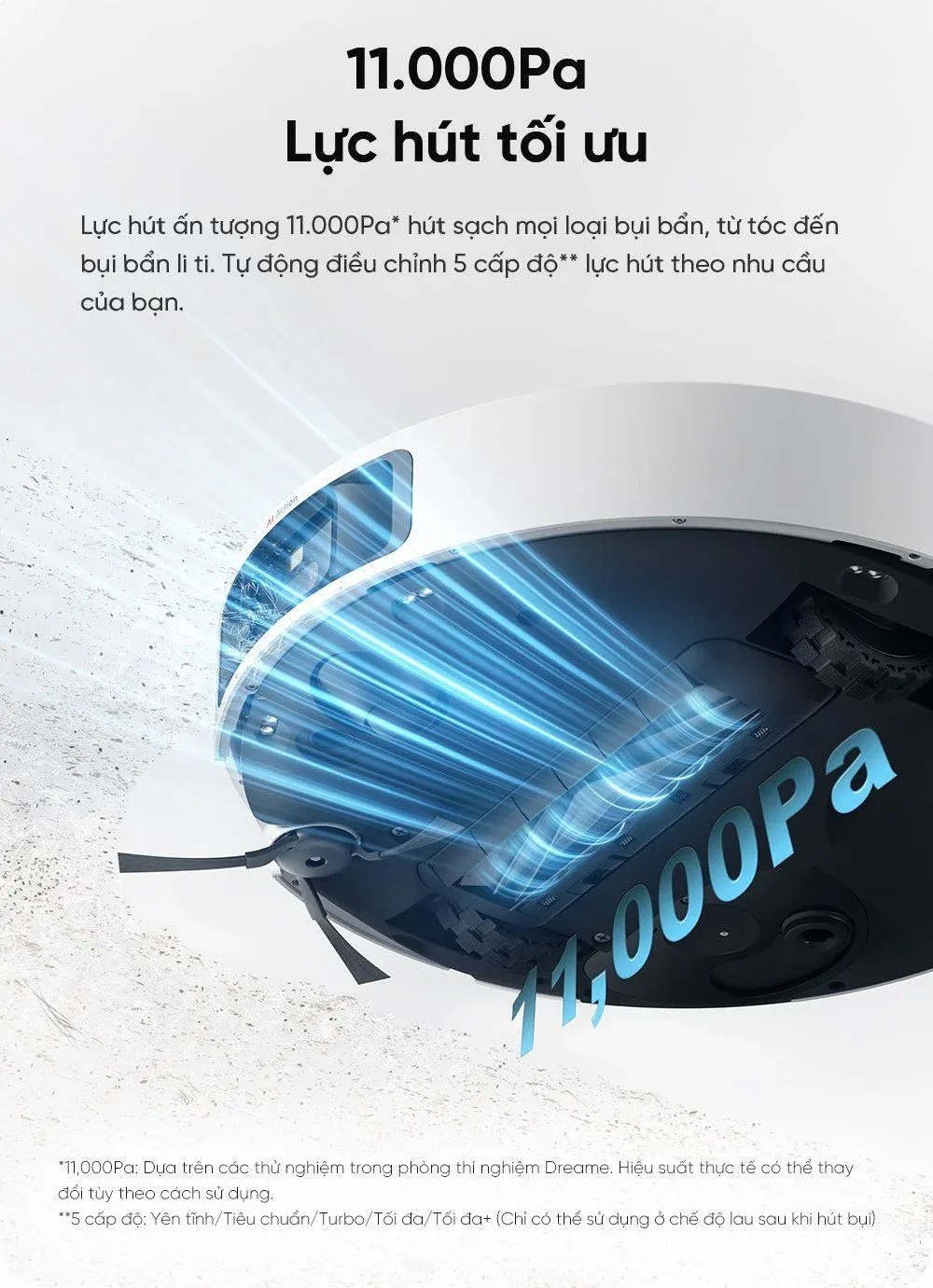 Robot Xiaomi Dreame L40 Ultra được trang bị công nghệ Vormax™ với lực hút lên đến 11.000Pa, giúp dễ dàng loại bỏ bụi bẩn, tóc và các vết bẩn cứng đầu trên mọi bề mặt. Với khả năng này, chiếc robot này thực sự là một trợ thủ đắc lực cho việc dọn dẹp nhà cửa.